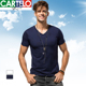 卡帝乐鳄鱼短袖t恤男士v领夏修身镂空印花紧身衣服青年学生个性潮