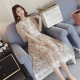 孕妇春夏装韩版气质仙女蕾丝V领弹性收腰孕妇连衣裙沙滩长裙夏季