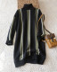 复古竖条纹高感毛混纺高领宽松长款秋冬女装 套头毛衣裙2色