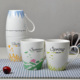 创意马克杯 咖啡杯子陶瓷杯田园家用茶杯水具水杯套装情侣杯 带勺