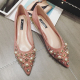琪琪家甜美平底少女鞋纯色绒面尖头鞋水钻珠珠铆钉点缀浅口单鞋潮