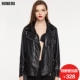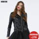 洪茹2017春装新款女装PU皮衣机车服短款黑色翻领机车皮衣夹克外套