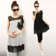 孕妇连衣裙夏装无袖中长款雪纺衫蕾丝网纱镂空韩版名媛显瘦娃娃裙