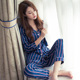 条纹开衫丝绸睡衣女春秋季韩国新款长袖长裤真丝衬衫领家居服套装