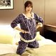 欧美 莫代尔长袖纯棉睡衣女士春秋季 时尚款衬衫领开衫家居服套装