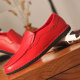 红色套脚懒人休闲皮鞋男一脚蹬软底软面皮男士豆豆韩版青年潮鞋子