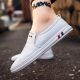 男士白色套脚一脚蹬休闲皮鞋英伦韩版百搭夏季透气懒人豆豆潮鞋