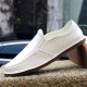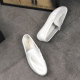夏季新款白色休闲鞋男不系带套脚一脚蹬白皮鞋软底软面皮英伦百搭