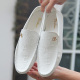 白色男士休闲鞋系带韩版青年软底男鞋平底透气夏季镂空豆豆皮鞋男