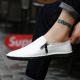 白色一脚蹬皮鞋男套脚懒人男鞋英伦韩版潮流平底软底软面皮休闲鞋
