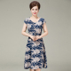 2017新款夏季中长款中老年棉绸连衣裙大码收腰系带短袖圆领印花裙