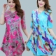 2017新款韩版夏季中老年牛奶丝连衣裙方块裙波西米亚碎花V领摆裙