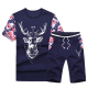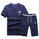 男士夏天套装圆领短袖t恤男运动休闲服修身韩版半袖男装大码印花