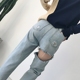 Tongse2017春夏新款屁股臀部破洞牛仔裤女士九分裤显瘦个性乞丐裤