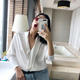 2017春夏新款百搭V领宽松上衣T恤人丝白衬衫女长袖铜氨丝