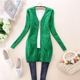 新款女春秋中长款v领针织衫毛衣开衫长袖宽松显瘦纯色百搭外套