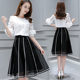 2017羽毛拼接T恤蕾丝打底衫时尚收腰半身蓬蓬裙小香风淑女连衣裙