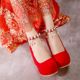 2017春夏季新款婚鞋红色结婚鞋女单鞋坡跟新娘鞋高跟红鞋婚礼鞋子