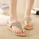 夏新款休闲舒适沙滩拖 清凉拖鞋夹脚人字拖水钻坡跟中跟女鞋