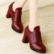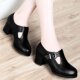 古奇天伦单鞋女鞋子2017新款韩版四季高跟鞋粗跟春秋百搭妈妈皮鞋
