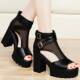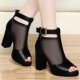 古奇天伦凉鞋2017新款女鞋子夏天百搭粗跟中跟韩版网纱鱼嘴高跟鞋
