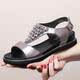 2017春夏百搭女鞋坡跟水钻凉鞋女露趾一字扣鞋子女中跟罗马鞋子女