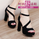 女士夏天超高跟凉鞋女夏2017新款 韩版 百搭绑带高跟鞋黑色鱼嘴鞋