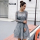 法素灰色蕾丝连衣裙女 2016秋装新款气质修身收腰显瘦A字裙韩版潮