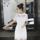 法素衬衫领蕾丝镂空连衣裙女 夏 2016新款短袖气质修身收腰包臀裙