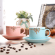 创意情侣咖啡对杯 带杯碟陶瓷马克杯 个性简约浮雕茶杯水杯
