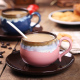 窑变流釉 特色手绘咖啡杯碟套装 花式陶瓷杯子 个性复古创意 送勺