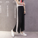夏季韩版运动裤女宽松显瘦百褶九分裤子侧边休闲裤百搭雪纺阔腿裤