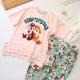 宅格调夏款卡通印花宽松款短袖长裤前后可穿休闲女睡衣家居服套装