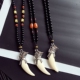 帅牙吊坠男士项链霸气黑曜石韩版版潮人复古饰品麻木个性挂坠配饰