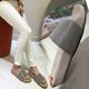 2017春夏韩版新款真皮链珠孕妇拖鞋一字型平底厚底休闲防滑凉拖鞋