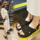 2017夏季欧美新款时尚百搭平底一字型拖鞋金属链珠软底防滑凉拖鞋