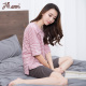 顶瓜瓜顶呱呱睡衣女夏五分袖棉质条纹圆领五分裤中裤家居服女套装