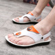 2016夏季新款休闲男凉鞋韩版潮流沙滩鞋真皮凉鞋软底两用拖鞋白色