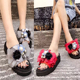 2017夏季松糕厚底真皮休闲女毛毛鞋手工亮片串珠水貂毛女凉鞋潮