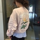 2017春装新款百搭宽松刺绣短外套衬衫拼接假两件夹克BF风棒球服女