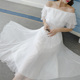香步时尚学生连衣裙2017夏季新款白色小清新收腰显瘦一字肩裙子