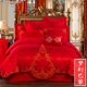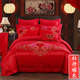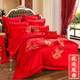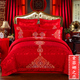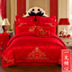 结婚四件套婚庆四六八件套多件套新婚大红色全棉提花刺绣床上用品