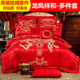 婚庆刺绣大红色龙凤结婚欧式多件套全棉贡缎大提花刺绣床单式床品