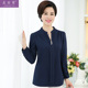 中老年女装春秋装雪纺衫长袖雪纺上衣40-50岁中年妇女打底衫纯色