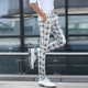 春季新款2017韩版潮修身男裤网纱小脚休闲长裤印花裤子哈伦裤