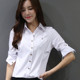 2017夏季新款宽松大码喇叭袖衬衫七分袖修身衬衣白色雪纺衫女短袖