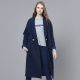 IIIVIVINIKO薇薏蔻 蓝色斜纹拉毛羊毛带帽长大衣J549024042E