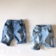 现货韩国进口童装代购17夏装男童女童做破水洗儿童牛仔中裤1038