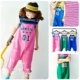 现货韩国进口童装代购2017夏装女童字母休闲个性儿童背带裤3010