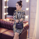 2017春秋连衣裙女韩版修身长袖显瘦包臀打底裙子高腰时尚印花中裙